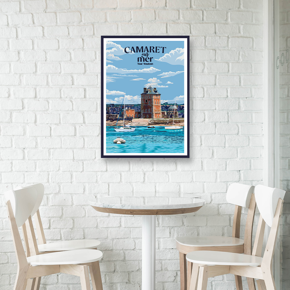 Cette décoration murale est une affiche encadrée qui représente Camaret sur Mer et sa Tour Vauban.
