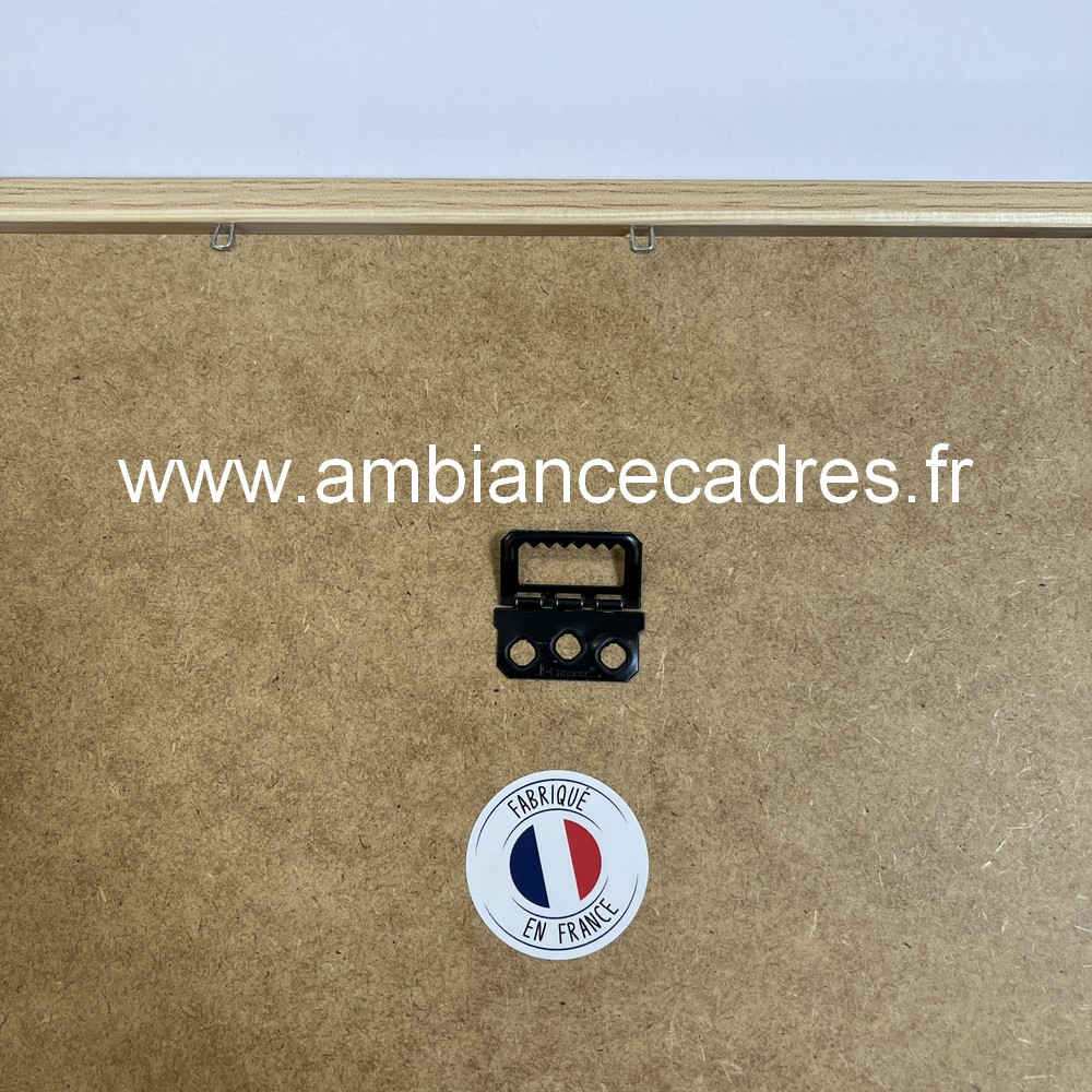 Elle est encadrée avec un cadre fin en bois, finition imitation chêne, sans verre. Le cadre est moderne avec un effet de profondeur (Voir la photo du cadre en gros plan)