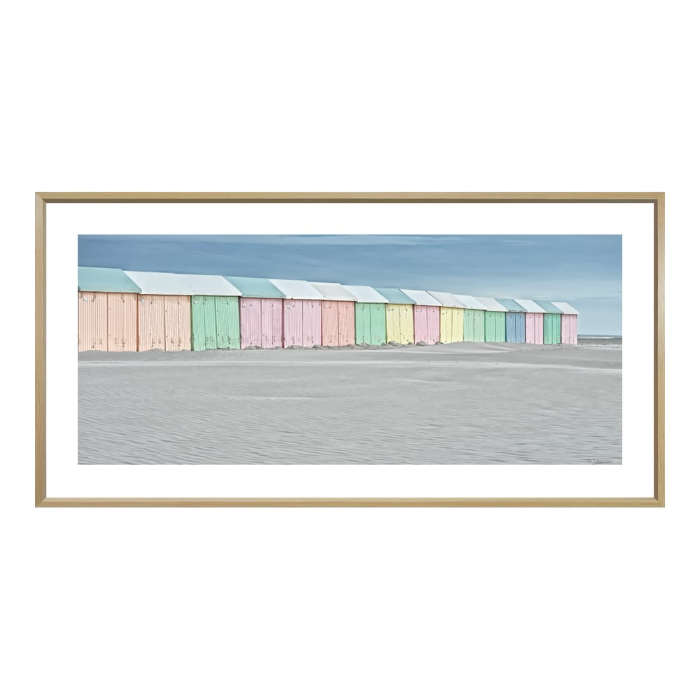 Cadre Cabanes Arc en Ciel Cohen ref 14.2913 : Dimension visible du visuel (photographie) : 40×90 (marge blanche de 3,5 cm autour de la photo) & Dimension extérieure du cadre : 52x102cm