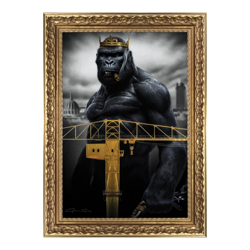 Cette décoration murale est une reproduction encadrée sans verre de l’artiste Alexandre Granger, intiulée « Kong in Nantes ».
