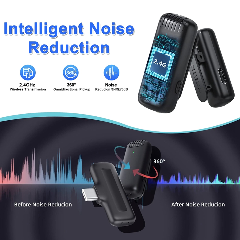 Microphone Lavalier sans fil pour Android de type C, condensateur omnidirectionnel, micro statique pour téléchargements, vidéo, podcast, Vlog AI0001