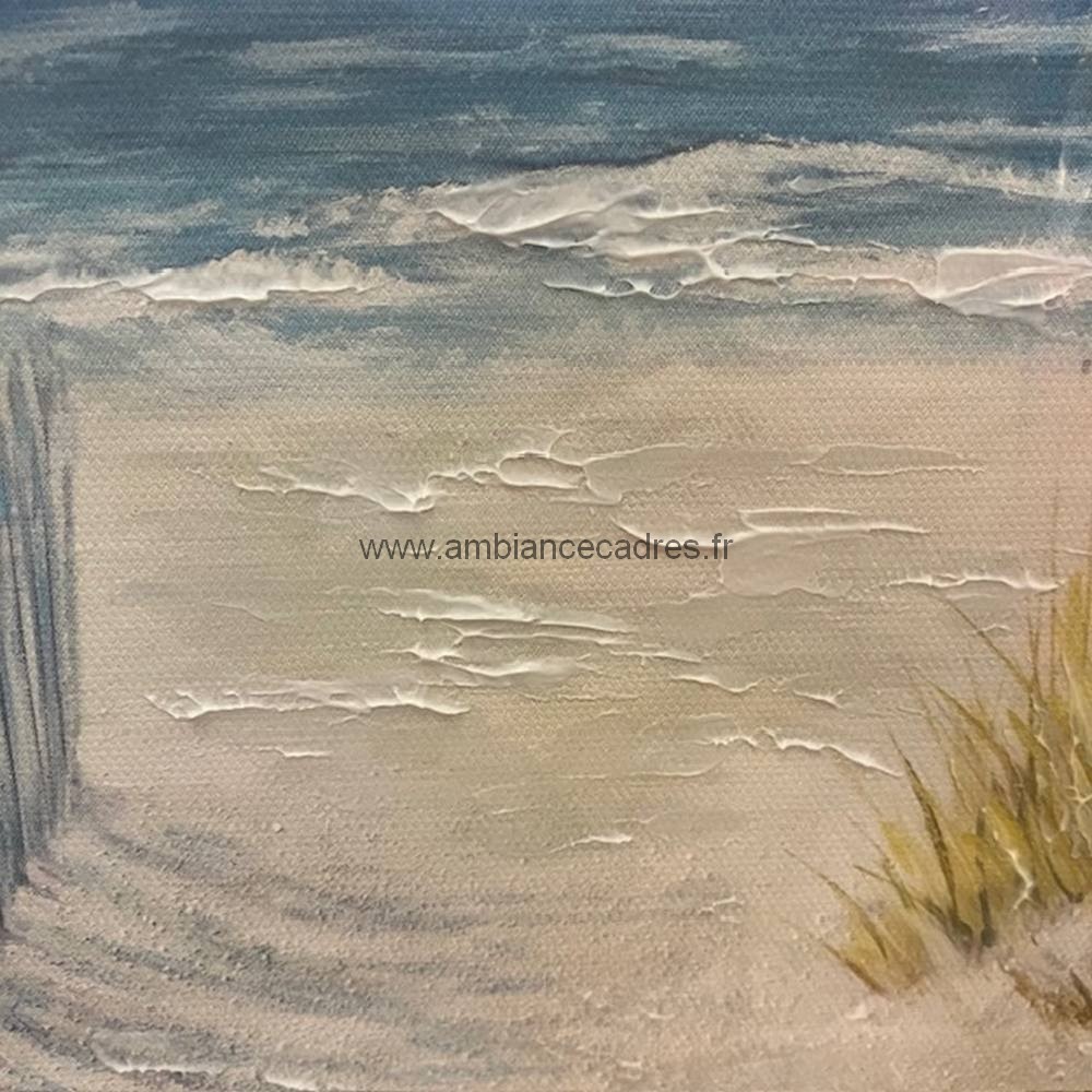 Tableau Mer et Dunes – Référence 03.3506C : Dimension visible de la toile : 40×40 cm & Dimension extérieure du cadre : 42.5×42.5 cm & Épaisseur sur le mur : 5.5 cm.