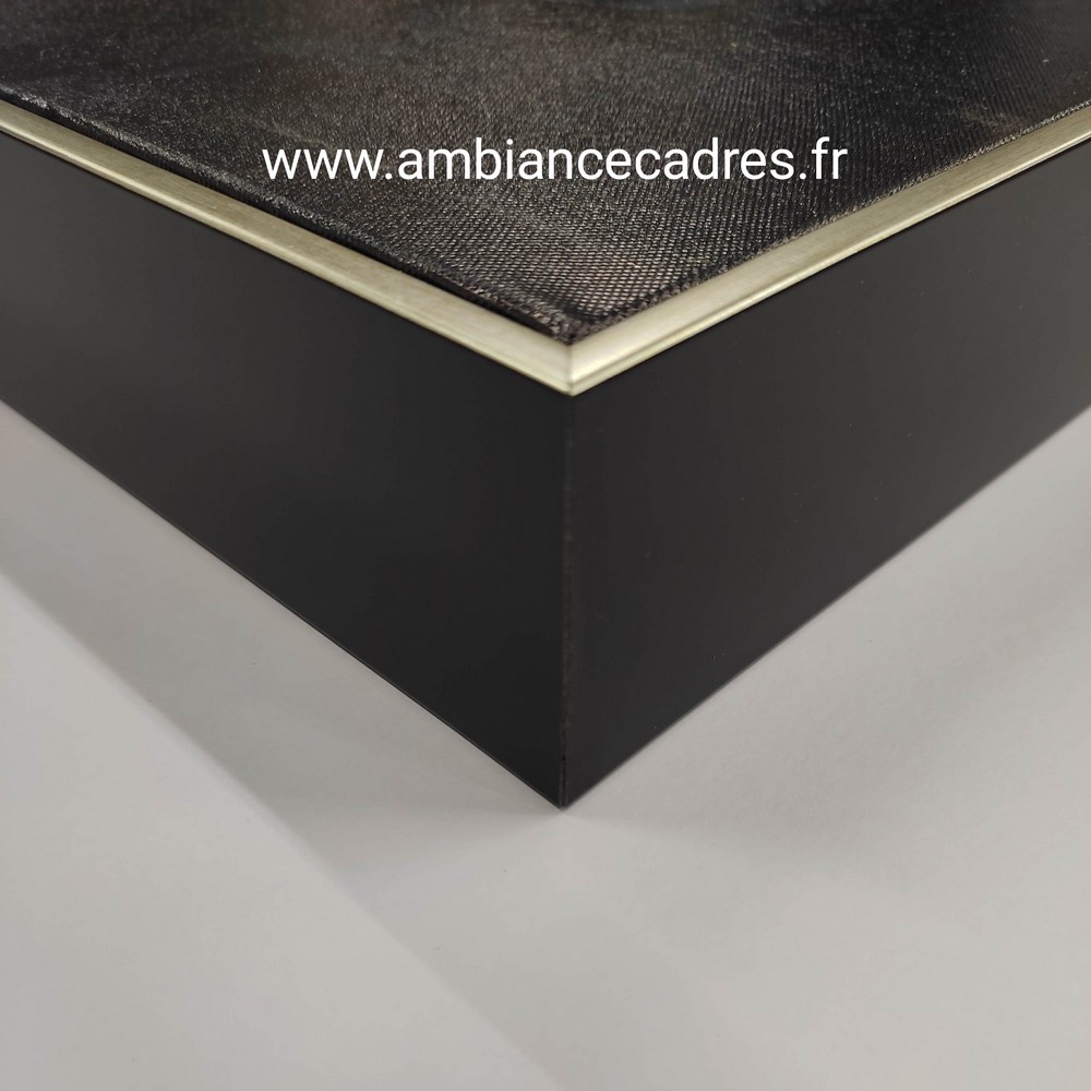 Couleurs principales : Noir, Blanc, Gris. Surépaisseurs sur la toile.